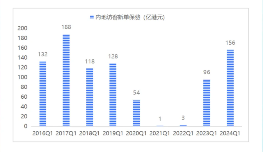 来看一组数据就知道了——2024年首季度,内地访客在香港投保的金额高达156亿港元,与去年同期相比增长了62.5%!