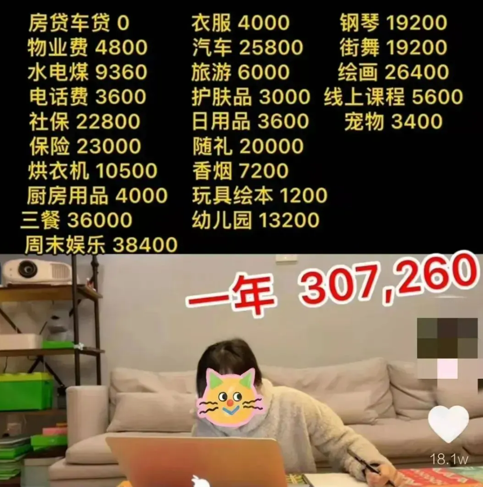 前些年,一位上海妈妈就分享了家庭年度开销账单,在无房贷车贷的情况下,林林总总加起来超过30万。