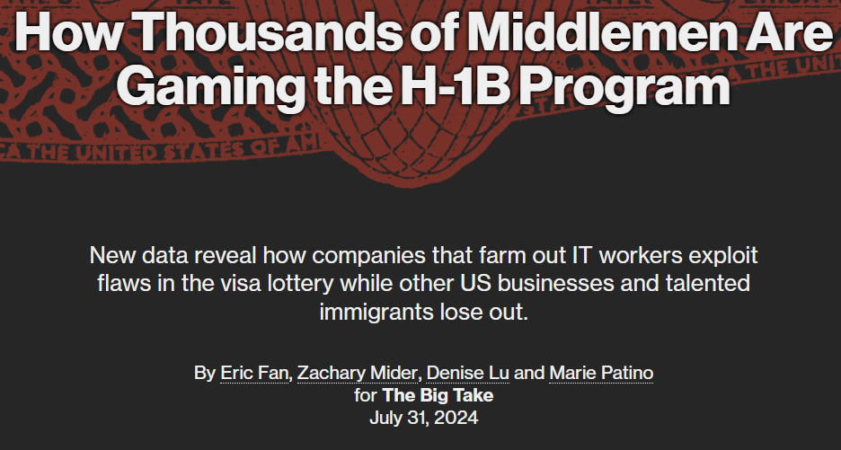 彭博新闻近期做了一期报道,专门探究美国工作签证H-1b中签率为何如此低,其背后的黑市操作。