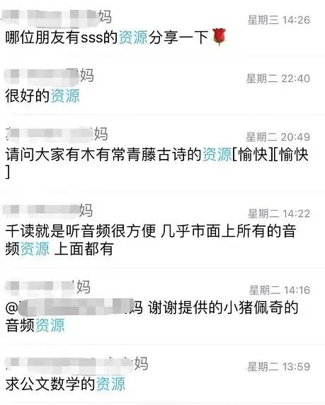 群里,家长们经常分享各种学习资源:你发英语听读的一个系列,我就发一本数学练习题……在这种不断叠加的过程中,家长们的网盘资源不断扩充。