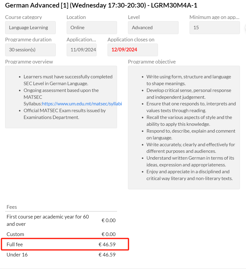 如果你拥有马耳他永居身份,课程费用简直是白菜价,仅需30-48欧元左右。