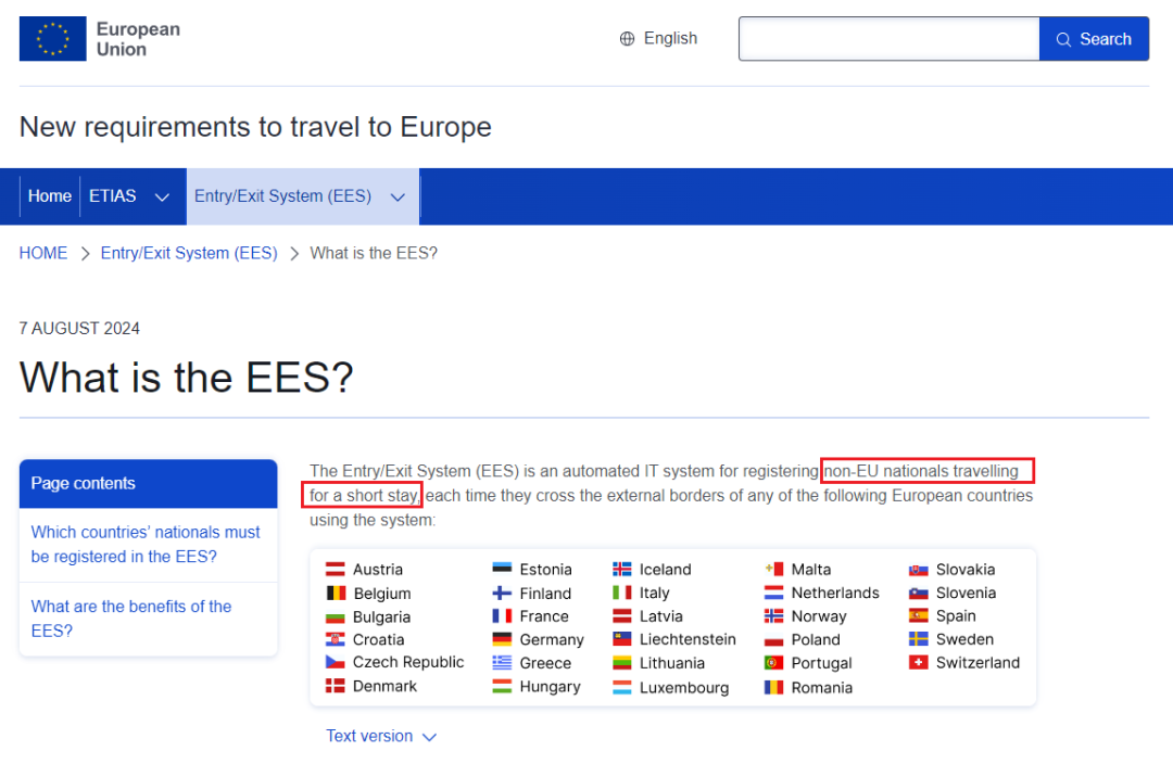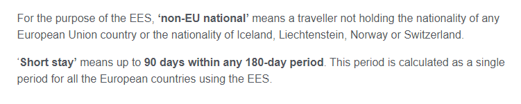 明确写着,EES系统只适用于non-EU nationals travelling for a short stay,就是短期停留的非欧盟国公民。