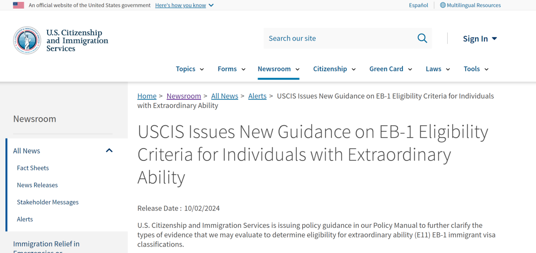 就在刚刚过去的国庆节(2024年10月2日),美国移民局(USCIS)对EB-1A杰出人才申请做了一些重大更新,详细说明了在审查EB-1A移民签证申请时,如何评估和使用某些类型的证据。