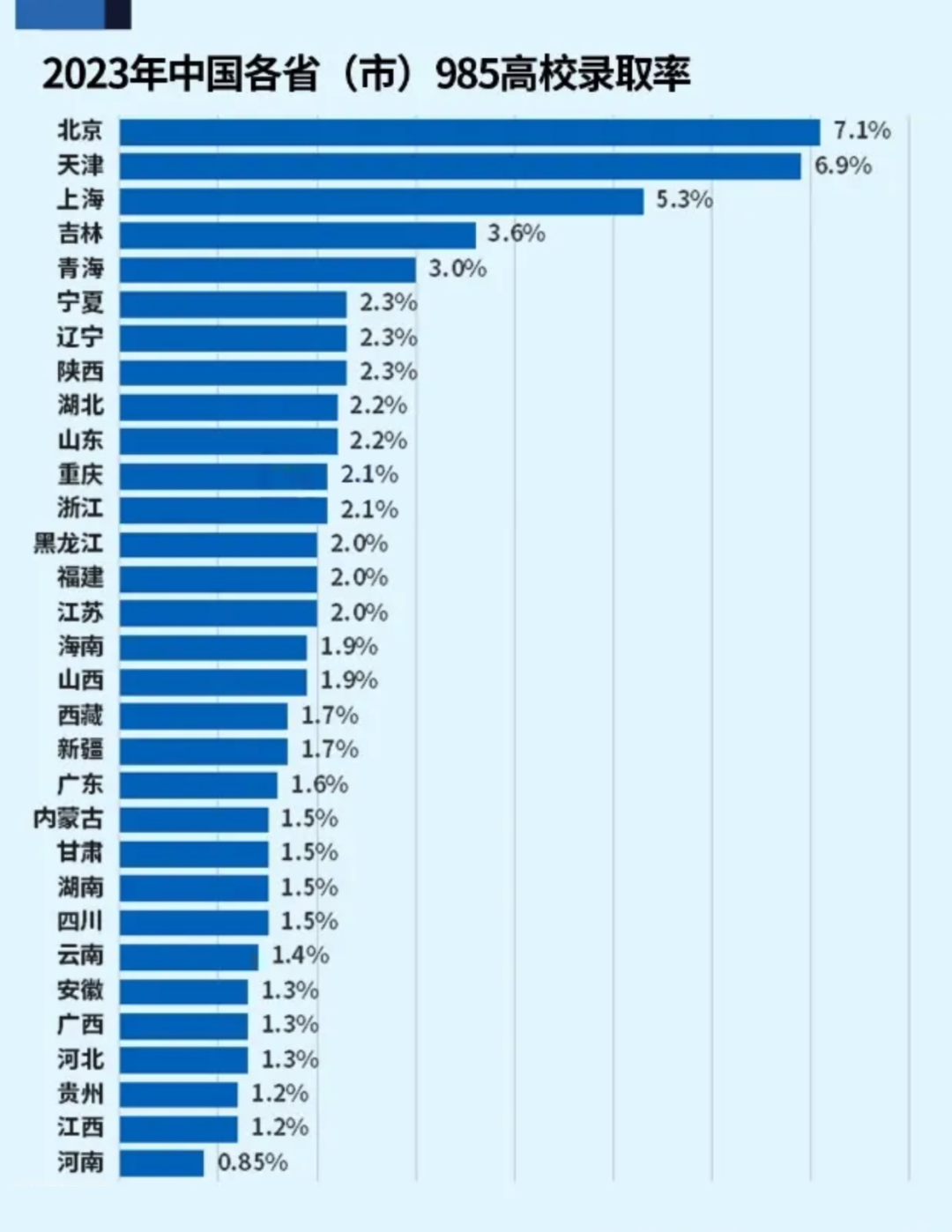 而且因为教育资源分配的不均等,每个地区的985录取率差异比较大。