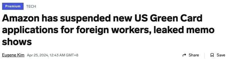▲亚马逊官宣停止为外籍员工提供美国绿卡申请