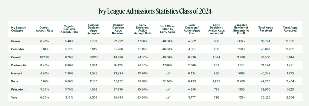 顶级名校——美国八大藤校,2024学年的平均录取率是 6.85%。