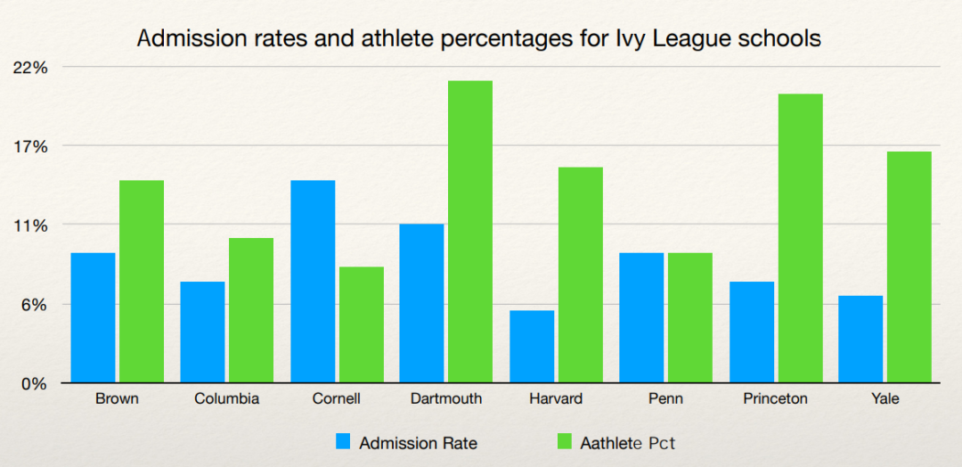 有数据显示,藤校“体育生”的录取率,是高于其他申请者的:
