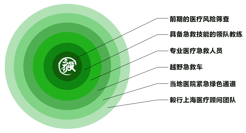 4、前期医疗风险筛查:活动前,医疗风险的预防,包括平板运动测试、身体情况调查、接机日体征检测、开营安全宣导、队内身体情况问询报备、提前采买定制保险等。