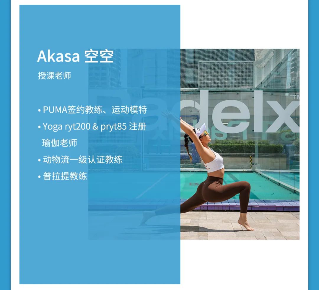 PUMA签约教练Akasa空空带大家一起享受水上瑜伽的魅力,泳池瑜伽不仅保留了瑜伽的冥想、呼吸和肢体伸展等基本元素,还利用水的浮力、阻力和压力来增加效果。