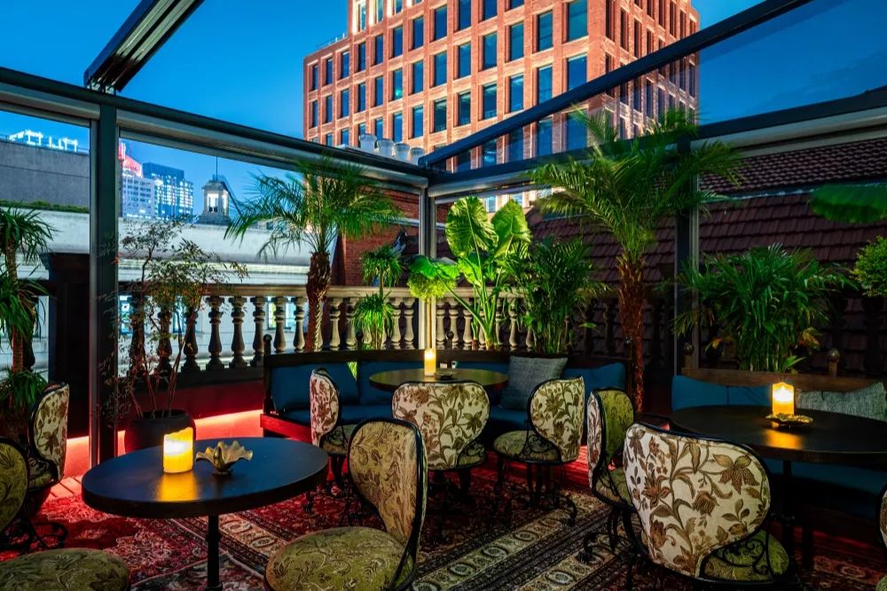 以中古世纪城堡为灵感设计的BU CASTLE,隐藏在益丰外滩源的5楼,内部陈设昏暗且华丽,剧场式的座椅分布错落有致,彩绘的玻璃窗泛着中世纪的悠久光芒。最令人惊喜的是,这里还藏了一处欧式复古风的花园露台,在这里吹着风,实在再惬意不过~