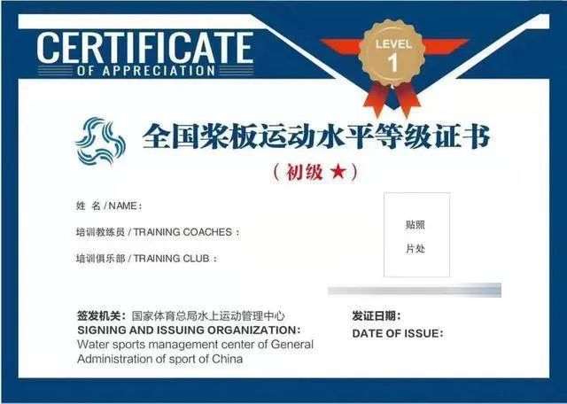 通过桨板课程,孩子们将历经考核,收获由国家体育总局颁发的《全国桨板运动水平等级证书》一星等级证书,包含L1、L2级别,这也是唯一一个全国范围内通用的桨板运动水平认证证书。