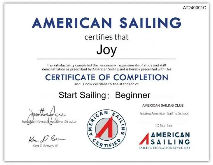 从1997年开始ASA认证,就成为了美国海岸警卫队和美国政府认可的“安全船艇运动课程”,ASA 认证,是世界上认证最广泛的帆船航海标准体系,超过90%以上的国家都承认ASA认证的证书。