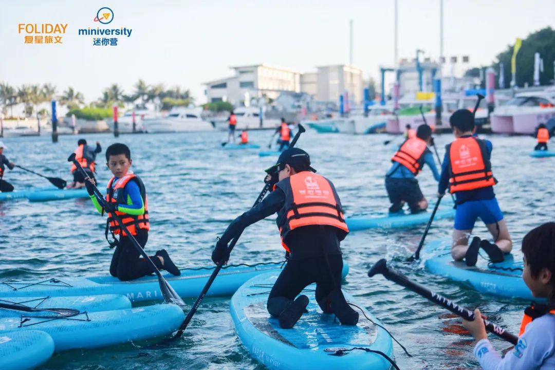 通过上板、下板的技巧训练,握桨、划水等方向与速度的把控,孩子们在专业教练的带领下,以国家体育局水上管理运动中心的教学体系为核心,用一支桨、一块板玩出花样。人与自然的奇妙的融合与对抗,让孩子提升肢体的协调性与平衡力,体验到SUP趣味文化下的水上魅力,并通过考核,收获桨板运动水平认证证书。